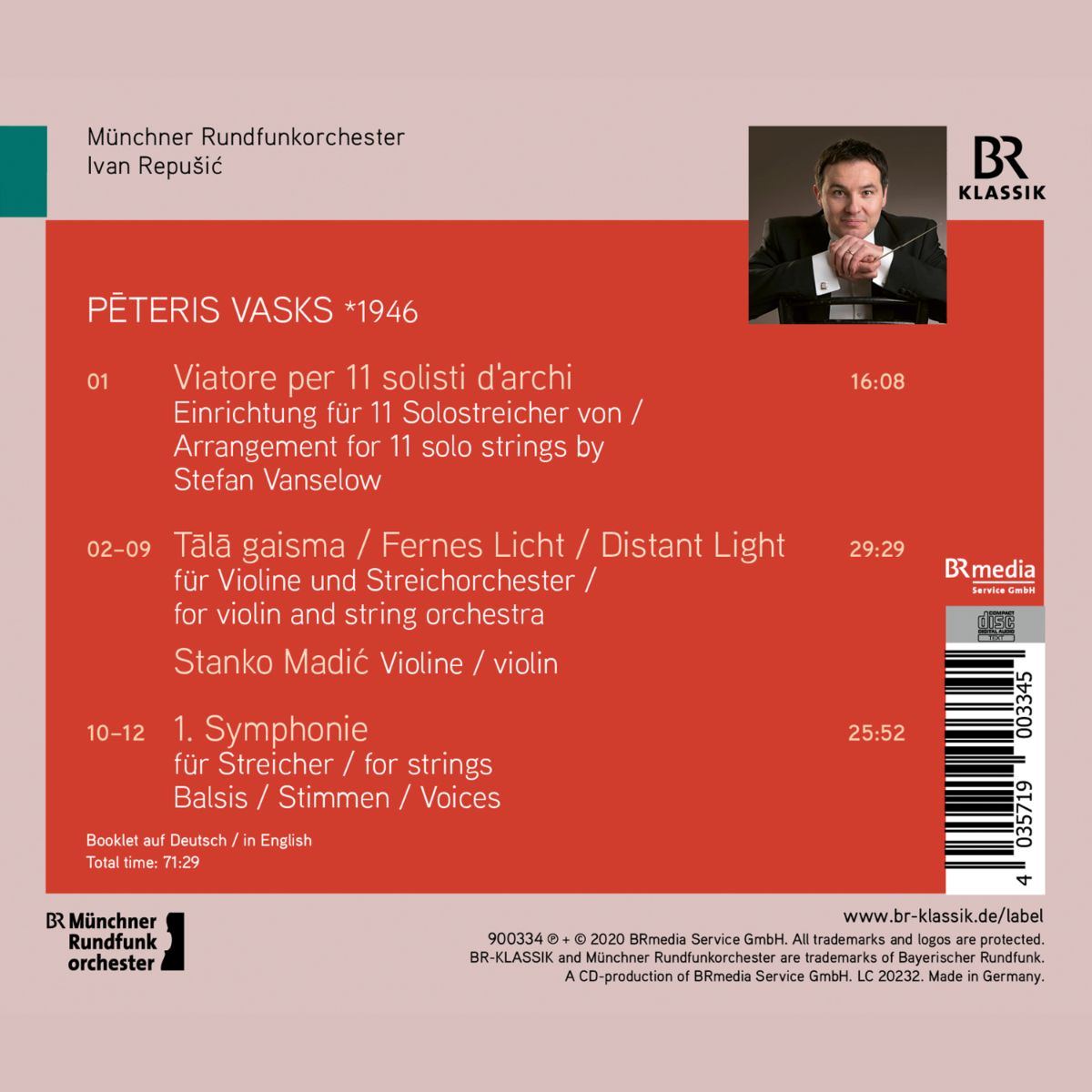 Die Werke P?teris Vasks‘ des vorliegenden Albums sind für kammermusikalische Streicherbesetzungen geschrieben: seine erste Symphonie „Balsis – Stimmen“ (1991), das eindringliche Violinkonzert „T?l? gaisma – Fernes Licht“ (1996/97) sowie das Arvo Pärt gewidmete Stück „Viatore“ (2001) – letzteres in einer Einrichtung für elf Solostreicher durch den Dirigenten, Kirchenmusiker und Arrangeur Stefan Vanselow.