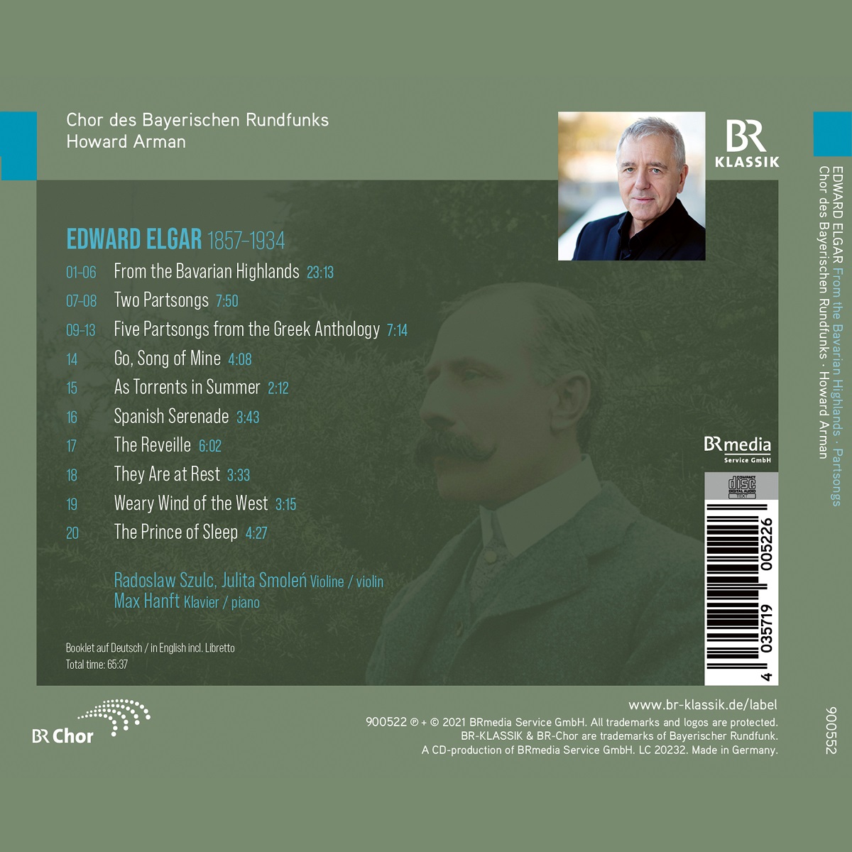 Edward Elgar schrieb weit mehr als das berühmte „Pomp & Circumstance“: Sein äußerst vielfältiges Oeuvre umfasst Sinfonien, Konzerte, Kammermusik, Klaviermusik und zahlreiche Chorwerke. Auf diesem Album sind begleitete und unbegleitete Partsongs Elgars zu hören: Der Zyklus „From the Bavarian Highlands“ op. 27 von 1895 entstand während eines Urlaubs Elgars mit seiner Ehefrau in Garmisch. Alice Elgar hatte die Verse nach bayerischen Volksweisen skizziert; in den Vertonungen ihres Ehemanns klingen oberbayerische Gesänge und Tänze an – freundliche Erinnerungen an unbeschwerte Urlaubstage in einer landschaftlich wie musikalisch reichen Gegend.