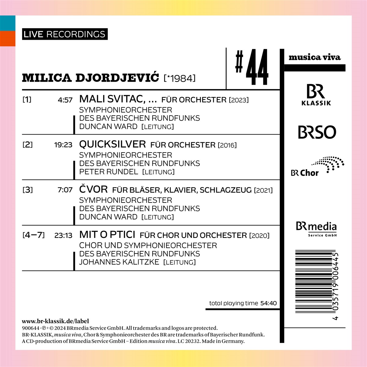 Eine überbordende Klangfantasie liegt der Musik der 1984 in Belgrad geborenen Komponistin Milica Djordjević zugrunde. Souverän verfügt sie über das gesamte Arsenal an zeitgenössischen Klang- und Spieltechniken, die immer wieder neu überraschen. Sie begann ihre Kompositionsstudien in ihrer Heimatstadt, wo sie sich bereits mit elektronischer Musik beschäftigte, ging anschließend nach Straßburg und ans Pariser IRCAM, bevor sie von 2011–2013 ihr Studium bei Hanspeter Kyburz an der Hochschule für Musik Hanns Eisler in Berlin abschloss. Ihr bereits umfangreiches Schaffen, das von führenden internationalen Solist*innen und Klangkörpern aufgeführt wird, umfasst Stücke für Soloinstrumente, Kammermusikwerke in verschiedensten Besetzungen, Vokalwerke und groß besetzte Orchesterkompositionen. In seiner Vielfalt unterstreicht es die handwerkliche Virtuosität der Komponistin.