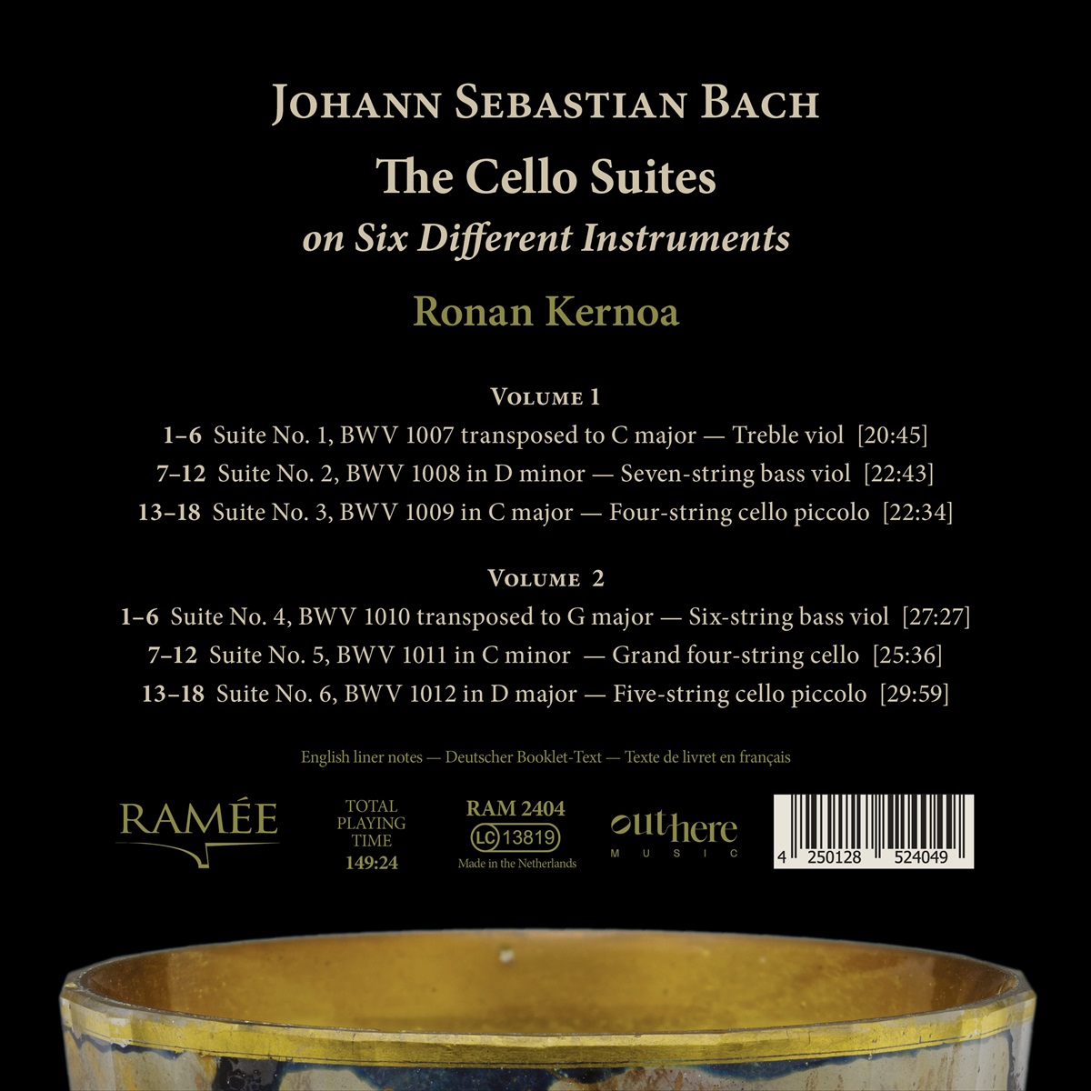Diese Überlegungen - und die Beobachtung, dass sich bestimmte Suiten besonders gut für bestimmte Instrumente zu eignen scheinen - inspirierten Ronan Kernoa dazu, die sechs Suiten auf sechs verschiedenen Instrumenten aufzunehmen.