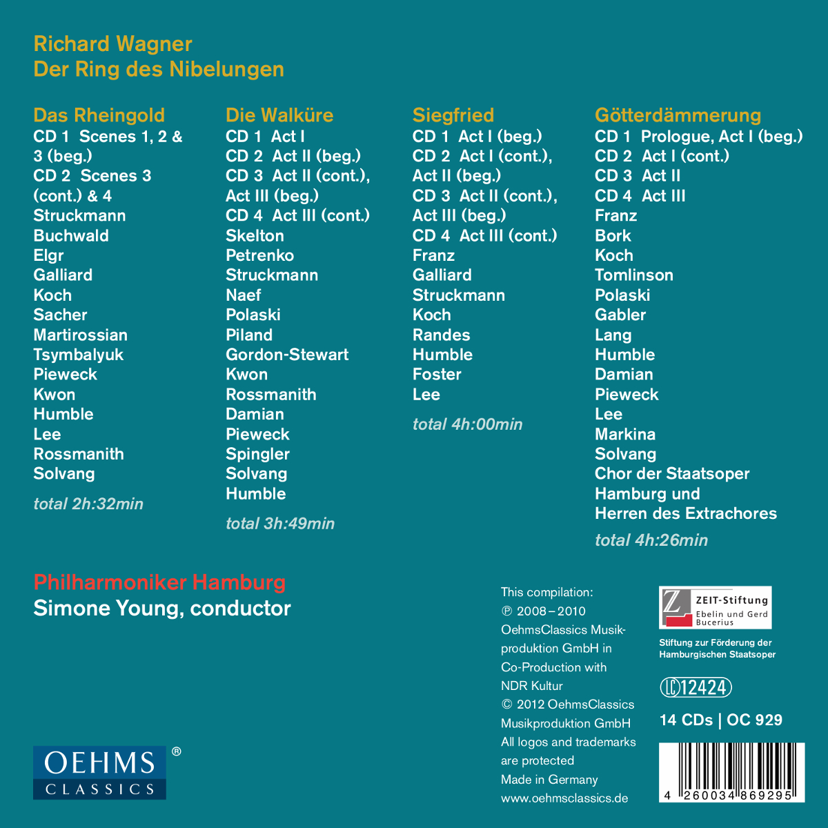 Bork, Robert / Buchwald, Jan / Chor der Hamburgischen Staatsoper / Damian, Maria-Cristina / Elgr, Ladislav / Foster, Catherine / Franz, Christian / Gabler, Anna / Galliard, Peter / Gordon-Stewart, Miriam / Humble, Deborah / Koch, Wolfgang / Kwon, Hellen / Lang, Petra / Lee, Ha Young / Markina, Maria / Martirossian, Tigran / Naef, Yvonne / Petrenko, Mikhail / Philharmoniker Hamburg / Pieweck, Katja / Piland, Jeanne / Polaski, Deborah / Randes, Diogenes / Rossmanith, Gabriele / Sacher, Jurgen / Singler, Renate / Skelton, Stuart / Solvang, Ann-Beth / Struckmann, Falk / Tomlinson, John / Tsymbalyuk, Alexander / Young, Simone