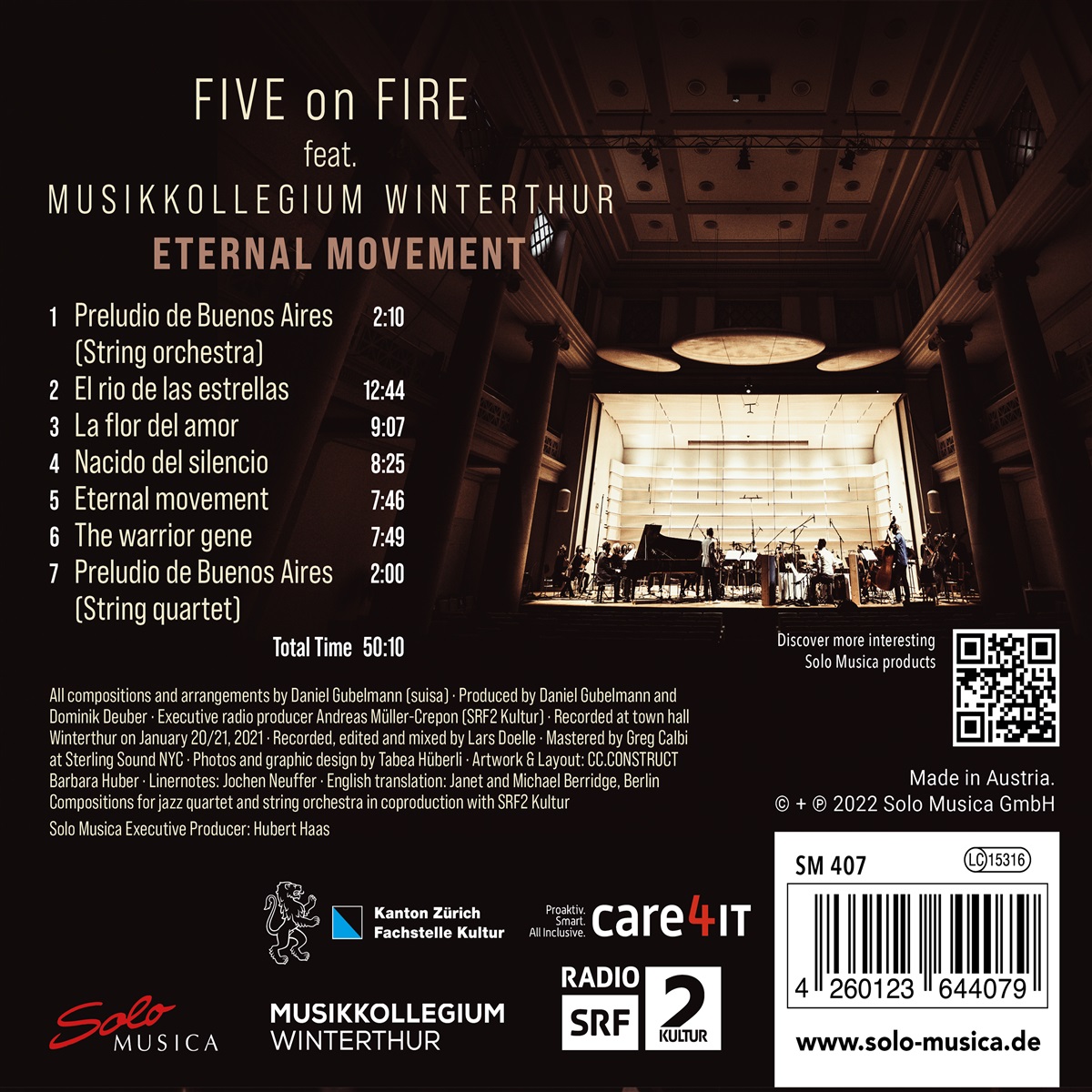 Daniel Gubelmanns lyrischer Saxofon-Sound ist sein Markenzeichen und steht im Zentrum seiner Band „Five on Fire.“ Für das aktuelle Album „Eternal Movement“ holte man sich noch die Streicherbesetzung des renommierten Musikkollegiums Winterthur dazu. Brückenschläge zwischen Jazzcombos und klassischen Ensembles haben eine lange Tradition, man denke nur an Charlie Parker, Miles Davis und Bill Evans. Mit der Möglichkeit, die eigene Band mit einem großen Streichorchester interagieren zu lassen, ging für Daniel Gubelmann ein Traum in Erfüllung. Kompositorisch bezieht sich Daniel Gubelmann unter anderem auf jenen „Third Stream“, mit denen Jazzer wie Gunter Schuller seit den 1950er-Jahren formale Konzepte entwickelten, um willkürliche Grenzen zwischen Jazz und Klassik durchlässig zu machen.