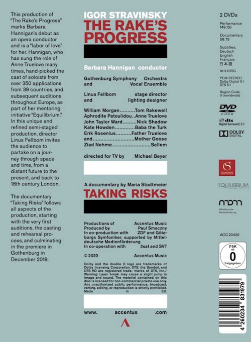 In dieser Produktion von „The Rake's Progress“ gibt Barbara Hannigan ihr Debüt als Operndirigentin . Das Projekt ist für sie eine Herzensangelegenheit: Hannigan, die die Rolle der Anne Truelove selbst viele Male gesungen hat, hat im Rahmen ihrer Mentoring-Initiative „Equilibrium“ aus über 350 Bewerbungen aus 39 Ländern und anschließenden Vorsingen in ganz Europa die Solistenbesetzung handverlesen. In dieser einzigartigen und raffinierten halbszenischen Inszenierung lädt der Regisseur Linus Fellbom das Publikum zu einer Reise durch Raum und Zeit ein, von einer fernen Zukunft in die Gegenwart und zurück ins London des 18. Jahrhunderts.