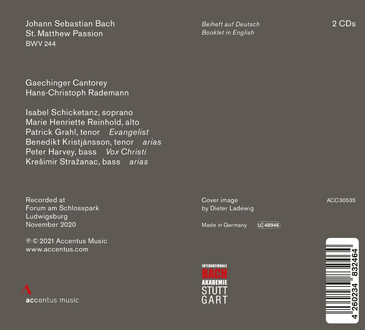 Im November 2020 machte sich Hans-Christoph Rademann mit Ensemble und Chor der Gaechinger Cantorey gemeinsam mit einem außergewöhnlichen Solistenensemble auf den Weg, Bachs zeitlosem Meisterwerk aus rasenden Chören, innigen Chorälen und emotionsgeladenen Arien eine neue und frische Perspektive zu verleihen, die in ihrer Dramatik und Bildhaftigkeit die bekannte Passionsgeschichte immer wieder neu erleben lässt.