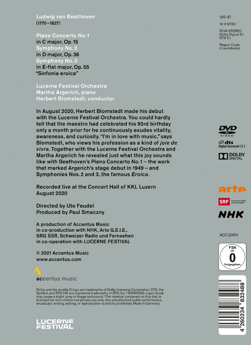 Im August 2020 gab Herbert Blomstedt sein Debüt mit dem Lucerne Festival Orchestra. Dass der Maestro erst einen Monat zuvor seinen 93. Geburtstag gefeiert hatte, merkt man ihm kaum an, denn er strahlt unentwegt Vitalität, Wachheit, Neugierde und Freude am Musizieren aus. Wie diese Freude klingt, zeigte er zusammen mit dem Lucerne Festival Orchestra und Martha Argerich mit Beethovens Klavierkonzert Nr. 1 – dem Werk, mit dem Argerich 1949 ihr Bühnendebüt gab – und den Sinfonien Nr. 2 und 3, der berühmten „Eroica“.