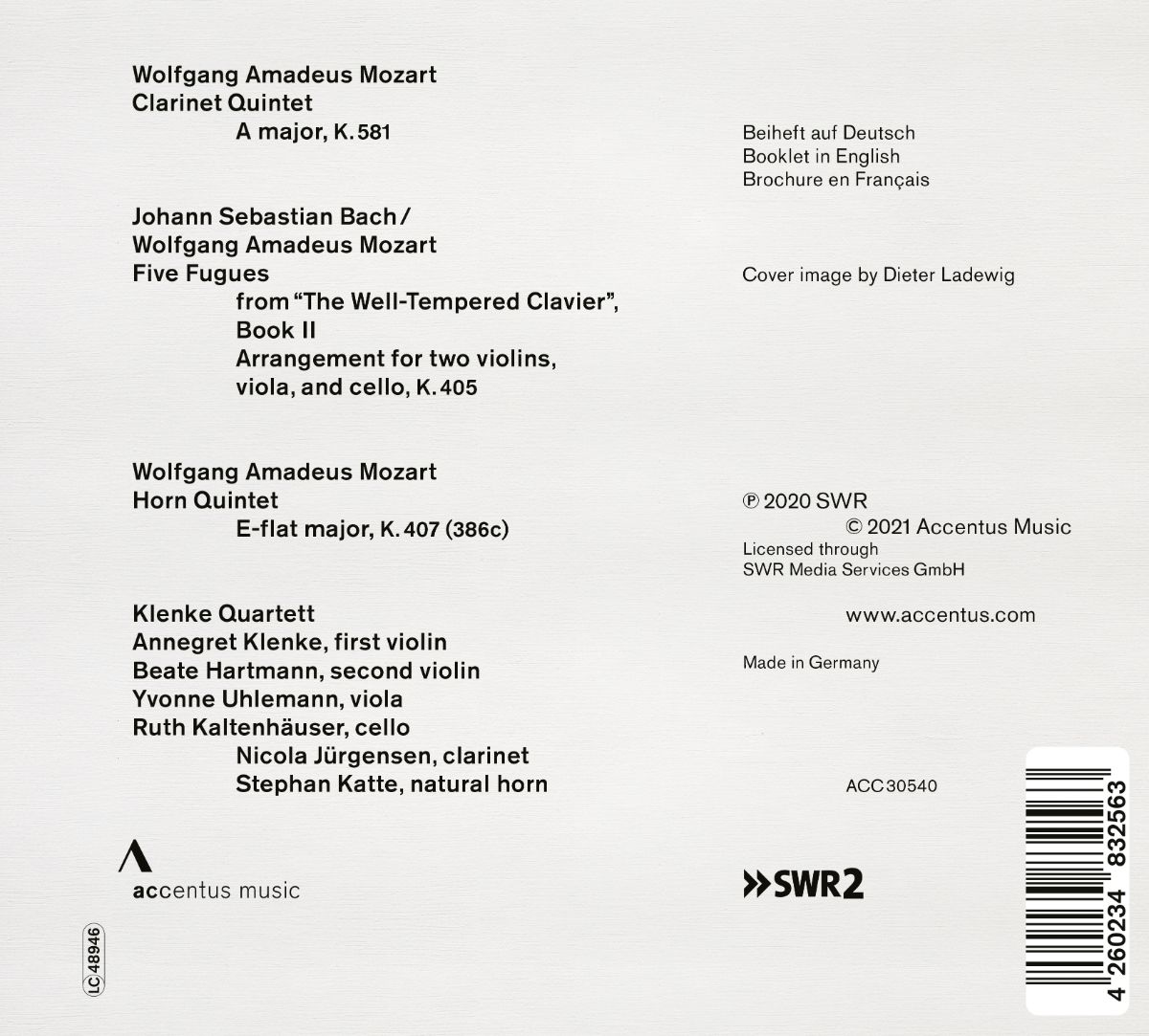 Im Juni 2021 feiert das Klenke-Quartett sein 30-jähriges Bestehen – und das in unveränderter Besetzung. Das aus vier Musikerinnen bestehende Ensemble hat sich als eines der wichtigsten deutschen Streichquartette etabliert. Tiefe, Stimmqualität, intimes Musizieren gepaart mit einer starken Programmdramaturgie sowie einer Klangintensität bis zur leisesten Note zeichnen das Klenke Quartett aus. Nach der erfolgreichen Aufnahme der sechs Streichquintette von W. A. Mozart zusammen mit Harald Schoneweg (ACC80467) präsentiert diese Aufnahme erneut Quintette von Mozart, diesmal mit dem Naturhornspieler Stephan Katte und der Klarinettistin Nicola Jürgensen als Gastmusiker.