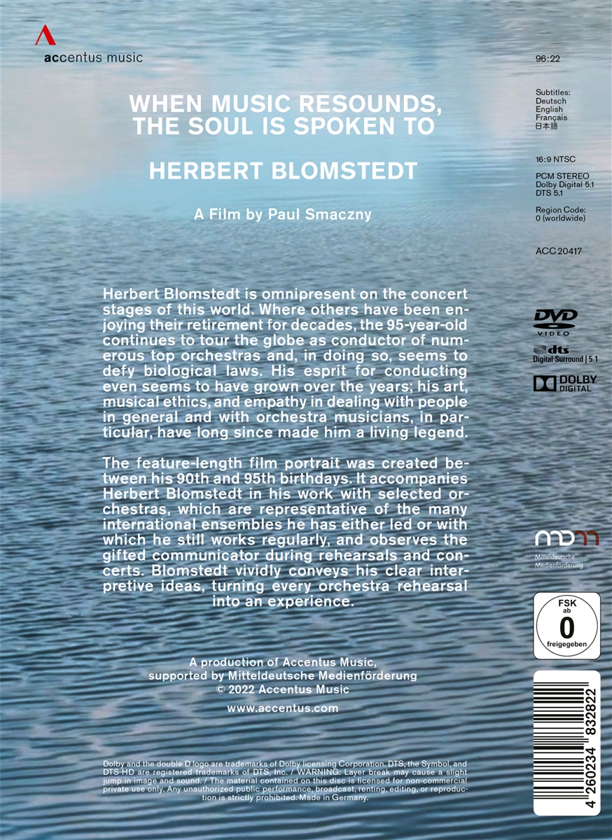 Herbert Blomstedt ist omnipräsent auf den Konzertpodien dieser Welt: Bis heute tourt der 95-Jährige als Dirigent zahlreicher Spitzenorchester um den Globus. Sein Esprit, seine Kunst, seine musikalische Ethik, seine Empathie im Umgang mit Menschen generell und mit Orchestermusikern im Besonderen, haben ihn längst zu einer lebenden Legende werden lassen. Das abendfüllende Filmportrait „Wenn die Musik tönt, wird die Seele angesprochen“ entstand zwischen seinem 90. und 95. Geburtstag. Es begleitet Herbert Blomstedt bei der Arbeit mit ausgewählten Orchestern, die stellvertretend stehen für die vielen internationalen Klangkörper denen er entweder als Chef vorstand oder mit denen er bis heute regelmäßig zusammenarbeitet und beobachtet den begnadeten Kommunikator bei Probenarbeit und im Konzert. Der Clou des Films: als Erzähler ist ausschließlich Herbert Blomstedt selbst zu hören.