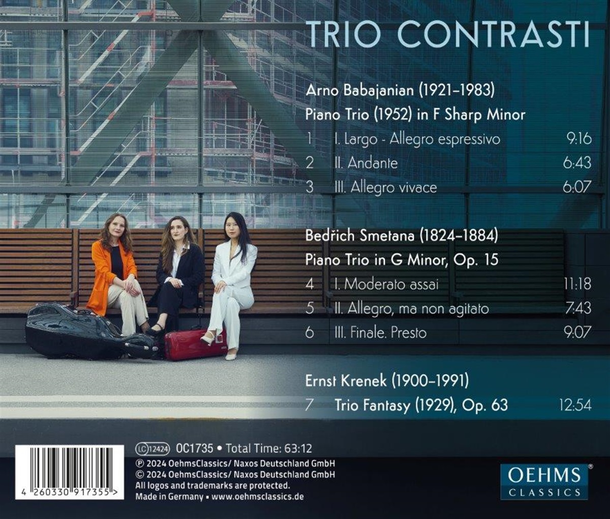 Auf ihrem Debütalbum begibt sich das junge Trio Contrasti auf Reise durch ein Klangmosaik, indem Epochen und Kulturen miteinander in den Dialog treten. Die Romantik gab der Kunstwelt ein neues Denkparadigma: Musik nahm die führende Stellung unter den Künsten ein. Die Freiheit der formalen Gestaltung, initiiert durch den Inhalt, entfaltete sich. Das Streben nach nationaler Identität und die rasante Entwicklung der spezifisch nationalen Stile in der Kunst begann. Die Romantik eröffnete den Weg für den Dialog zwischen den Epochen und Kulturen, der bis ins 20. Jahrhundert anhielt. Drei Werke, die keine direkte Verbindung zueinander haben, stehen dennoch in einem gemeinsamen Kontext. Wenn man sie durch das Prisma eines romantischen Paradigmas betrachtet, kann man sie als Stationen auf dem Weg durch Epochen und Kulturen ansehen.