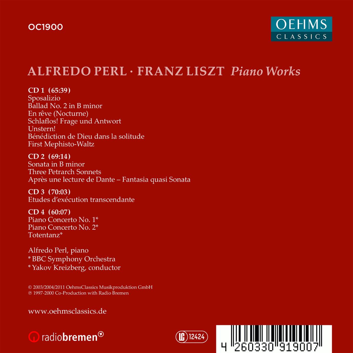 Diese Sammlung enthält die wichtigsten Einspielungen von Alfredo Perl mit Klavierwerken von Franz Liszt: Die Sammlung mit Aufnahmen der Jahre 1997-2000 enthält die „Études d'exécution transcendante“, Highlights der „Années de pèlerinage“ (darunter die drei Petrarca–Sonette), die Klaviersonate in h-Moll, die Ballade Nr.2 in h-Moll, den Mephisto-Walzer und zahlreiche andere Werke. Besondere Highlights sind die Einspielungen der beiden Klavierkonzerte mit dem BBC Symphony Orchester.