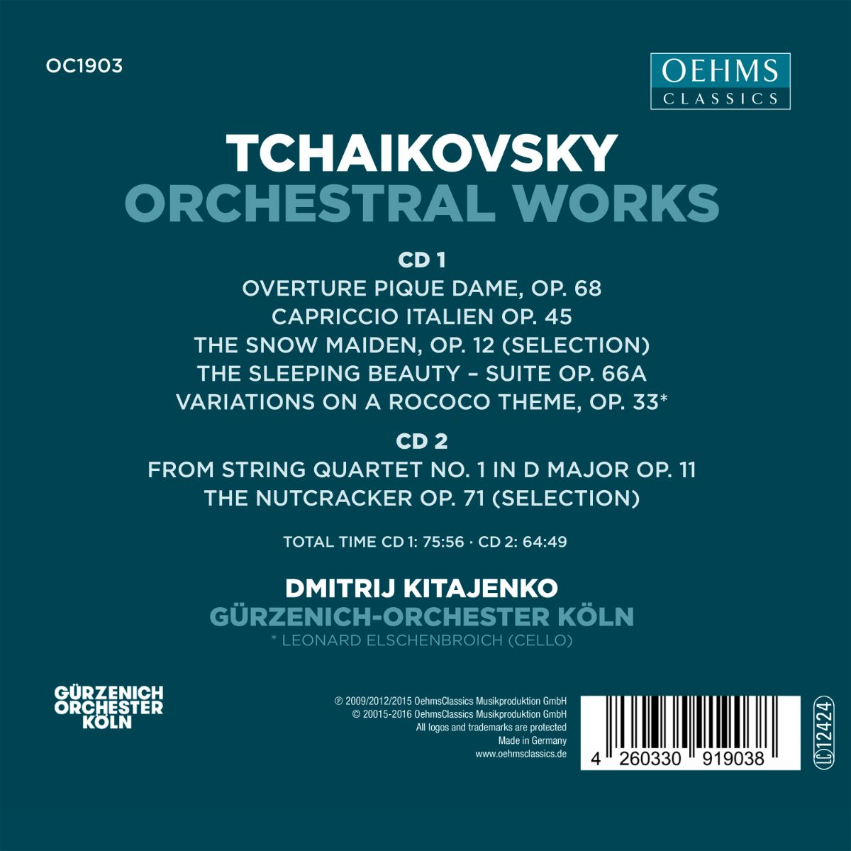 Diese Zusammenstellung vereint beliebte Orchesterwerke und Ballettmusiken Pjotr Iljitsch Tschaikowskis. Dmitri Kitajenko, der im Sommer letzten Jahres seinen 80 Geburtstag feierte und als langjähriger Dirigent dem Gürzenich-Orchester Köln eng verbunden ist, setzte mit diesen nun wiederveröffentlichten Aufnahmen neue Maßstäbe in Sachen Interpretationskunst russischer Musik: Sein Tschaikowski mit dem Kölner Traditionsorchester vereint Lebhaftigkeit, Wärme und reiche Klangfarben mit Präzision und Spielfreude.