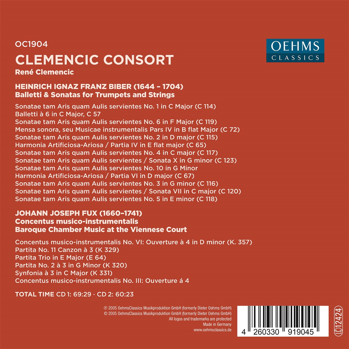 Die 2004 entstandenen Aufnahmen des renommierten Clemencic Consort mit bedeutenden Werken von Johann Joseph Fux und Heinrich Ignaz Franz Biber faszinieren auch fast 20 Jahren nach der Erstveröffentlichung. René Clemencic und seine Mitmusiker und Mitmusikerinnen waren (und sind!) immer noch eine der besten Adressen für authentische Interpretationen barocker Musik, die sowohl die filigrane Grazilität der Musik Bibers als auch die intelligente Verquickung des französischen und italienischen Stils am Wiener Hof bei Fux bestmöglich herausarbeiten.