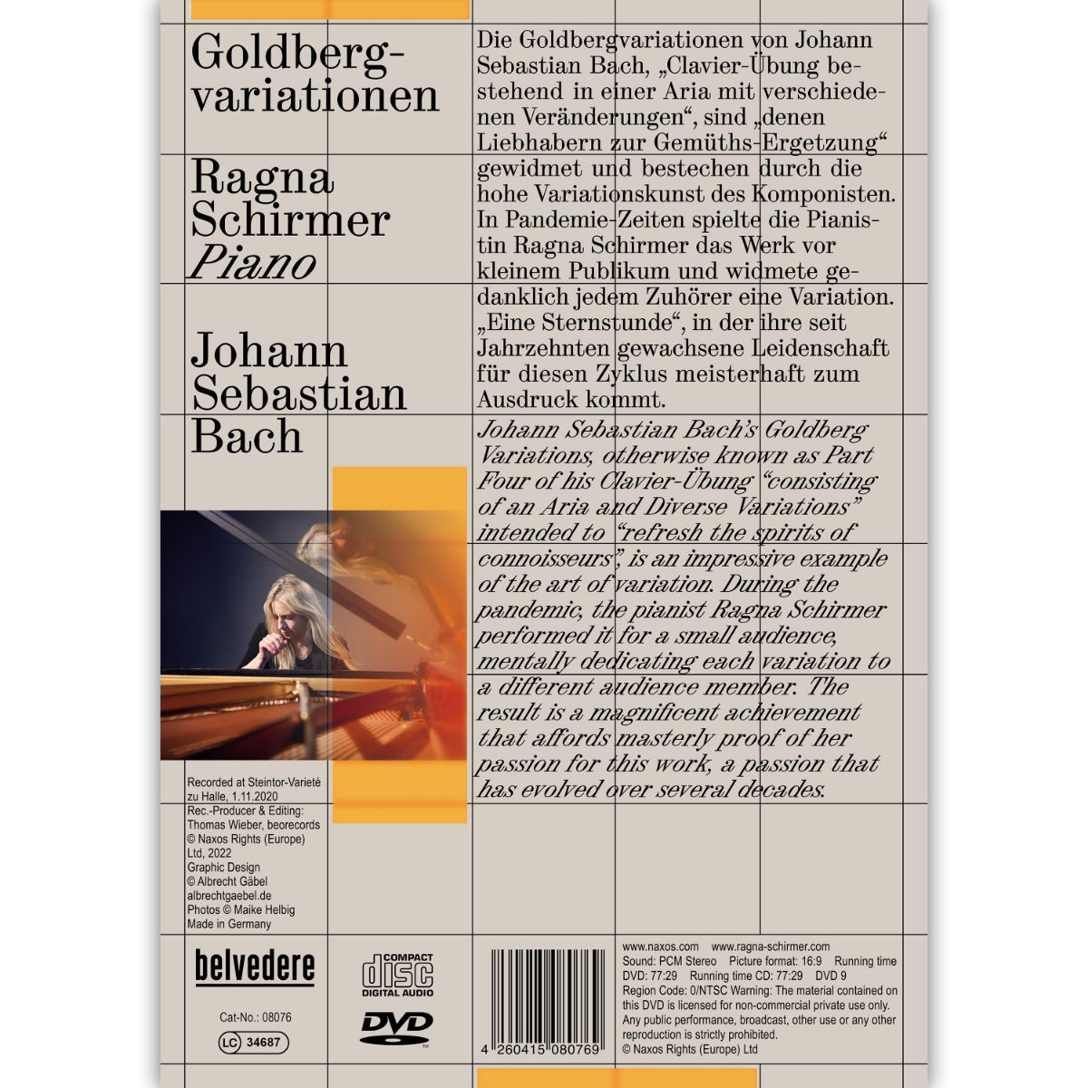 Die Goldberg-Variationen von Johann Sebastian Bach sind ein beeindruckendes Beispiel für die Variationskunst. Während der Pandemie führte die Pianistin Ragna Schirmer das Werk für ein kleines Publikum auf, wobei sie jede Variation gedanklich einem anderen Zuhörer widmete. Das Ergebnis sind intensive, tief verinnerlichte Interpretationen. Vor über 20 Jahren debütierte Ragna Schirmer mit den Goldberg-Variationen auf Tonträger. Schon damals war ihr intuitiver und gleichzeitig analytischer Ansatz bahnbrechend, mit dieser zweiten Gesamtaufnahme legt sie die Summe ihrer über Jahrzehnten gewachsenen Leidenschaft und Kenntnis des Werkes vor.