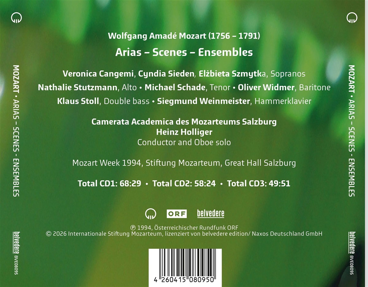 Kaum eine Veranstaltung der Mozartwoche ist den Besucherinnen und Besuchern so eindrücklich im Gedächtnis geblieben wie die Produktion „Ombra felice“ aus dem Jahr 1994. Der Überschuss an Kreativität auf dem Gebiet der Oper zeigt sich bei Mozart nicht nur in Fragmenten von Bühnenwerken wie „Zaide“ KV 344, „L’oca del Cairo“ KV 422 oder „Lo sposo deluso“ KV 430, sondern auch in den mehr als siebzig Arien und Ensembles, die er als Einzelwerke komponiert hat. Manche davon sind aufgegebene oder nie vollendete Entwürfe, da Mozarts Sängerinnen und Sänger (oder manchmal auch er selbst) mit ihnen nicht vollends zufrieden waren, andere waren Beiträge zu fremden Opernproduktionen, die damals vielerorts in Form von Pasticcios gegeben wurden. Die breite Zusammenstellung dieses Albums bildet somit einen guten Überblick über Mozarts Arien-Schaffen.