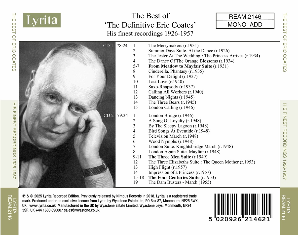 Alan Bunting, der die Musik auf diesem Album restauriert und remastert hat, hatte schon seit einiger Zeit über eine „definitive“ Eric-Coates-Sammlung nachgedacht, aber erst die Entdeckung von Michael Paynes Doktorarbeit für die Durham University mit dem Titel „The Man Who Writes The Tunes“ (Der Mann, der die Melodien schreibt) veranlasste ihn, ernsthaft mit der Arbeit daran zu beginnen. Michael Payne, der seine Doktorarbeit inzwischen zu einem Buch über Coates erweitert hat, hat auch einen ausführlichen Essay für diese Box geschrieben. Dieses Doppelalbum enthält über zweieinhalb Stunden ausgewählte Stücke aus der 7-CD-Box. Eric Coates war ein englischer Komponist von Unterhaltungsmusik. Er schrieb Orchestersuiten, Fantasien, Marschmusik, Lieder und Walzer. Einige seiner Stücke waren als Titelmelodien für Radio- und Fernsehsendungen bekannt.