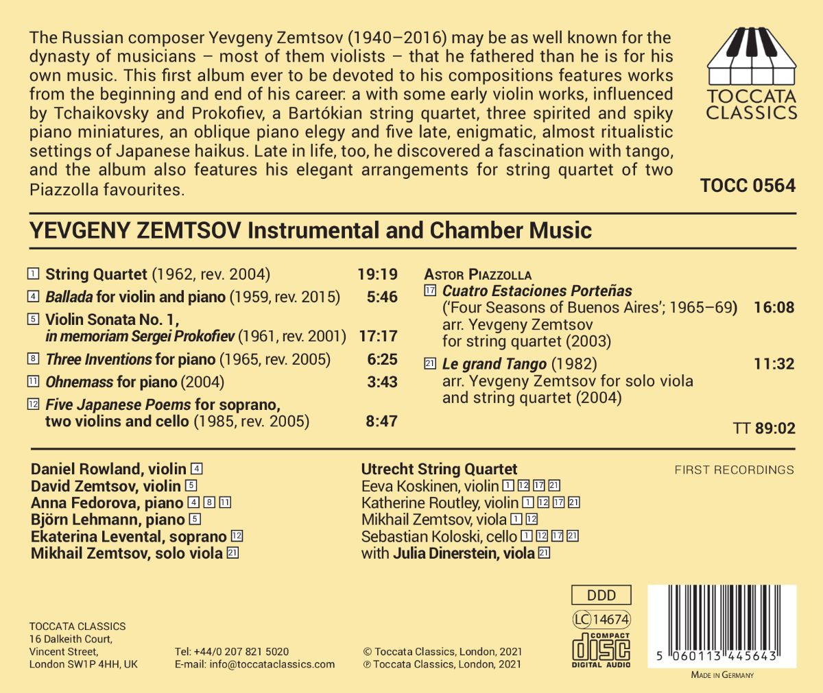 Rowland, Daniel / Levental, Ekaterina / Fedorova, Anna / Utrecht String Quartet