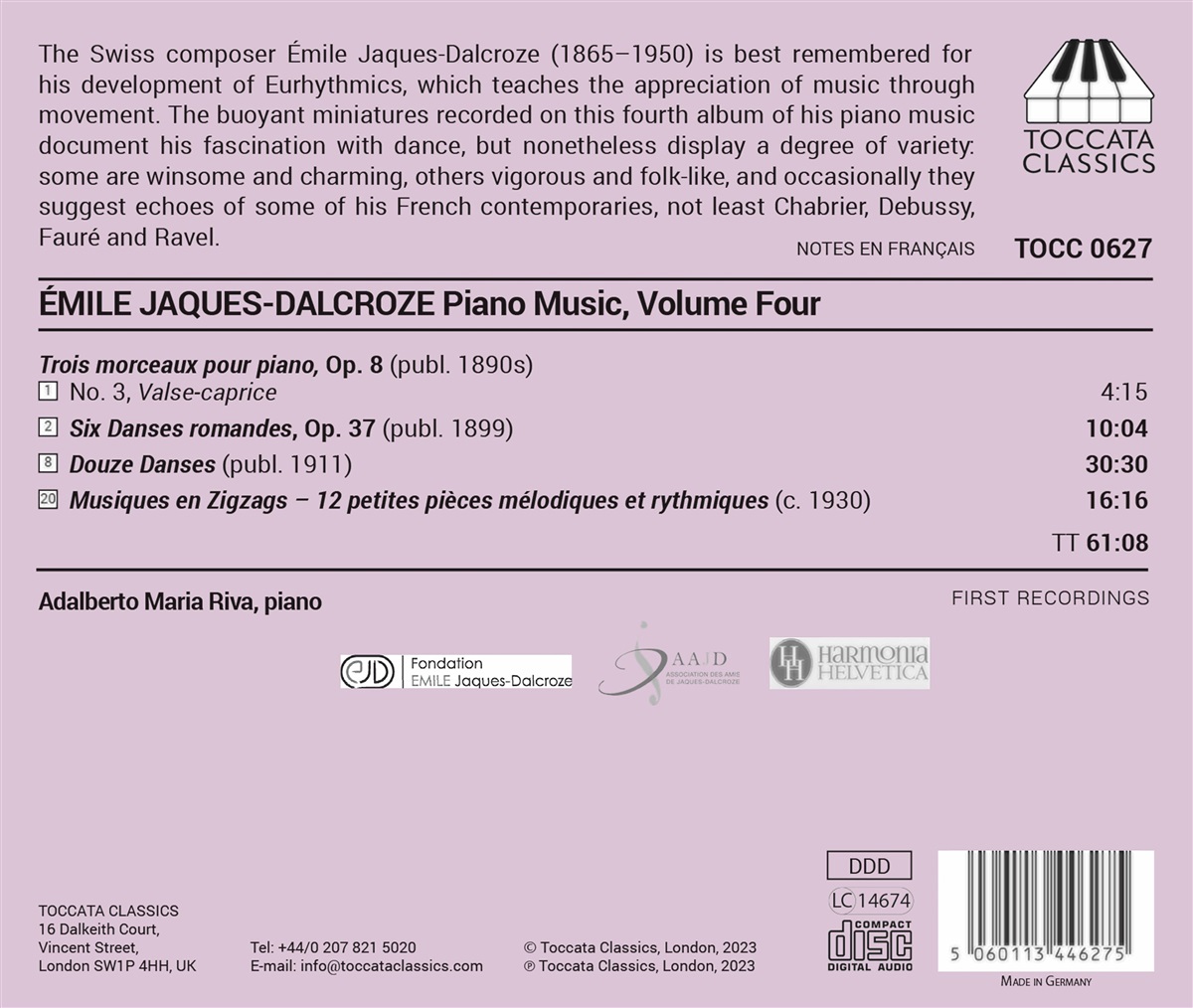 Jaques-Dalcroze: Klaviermusik Vol. 4