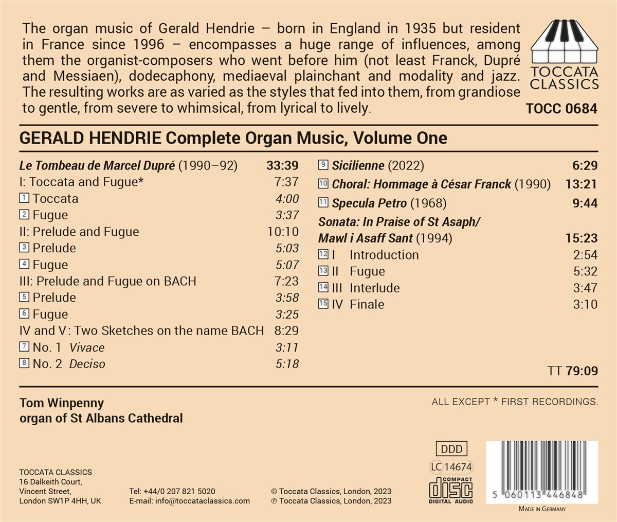 Hendrie: Sämtliche Orgelmusik Vol. 1