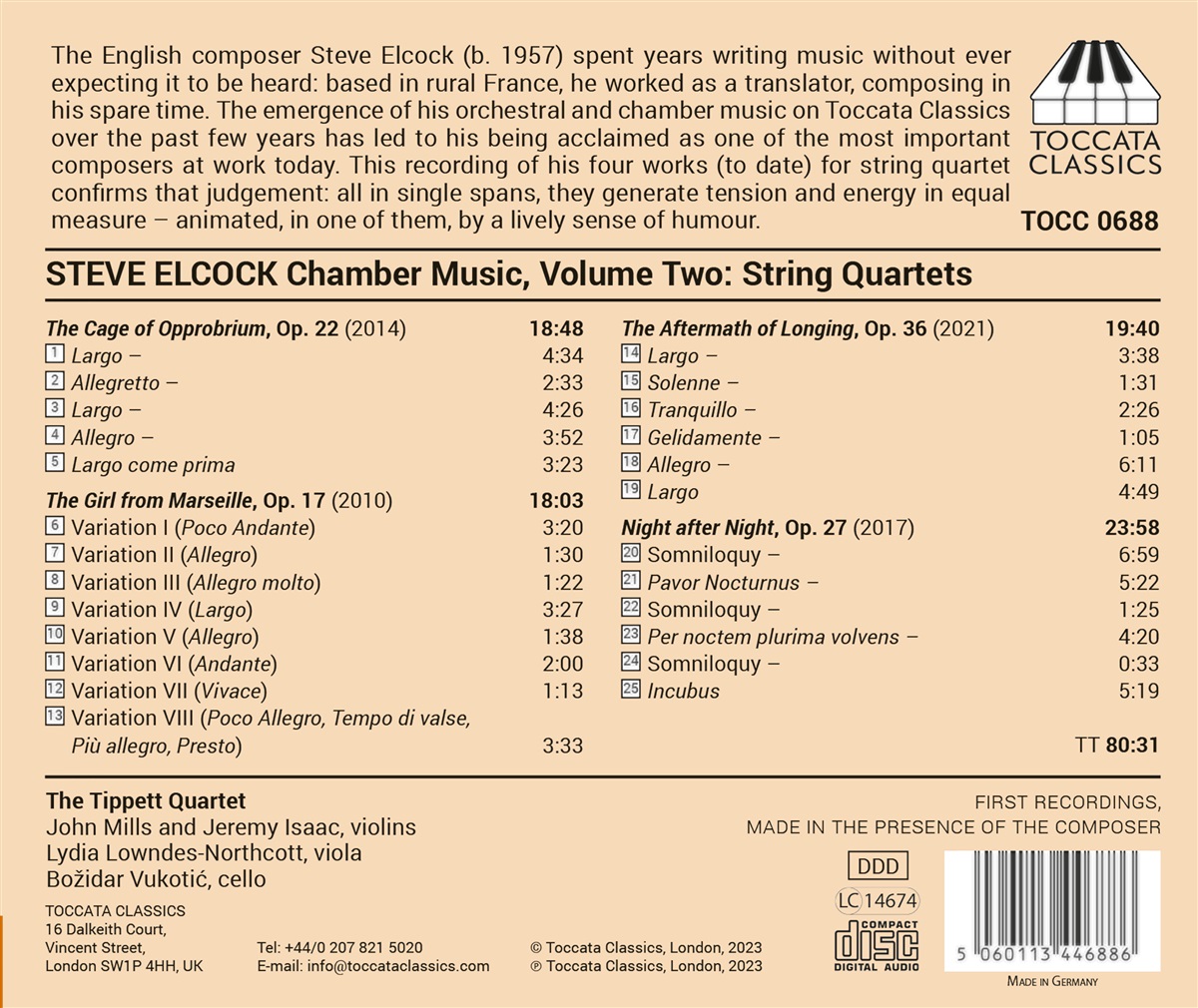 Elcock: Kammermusik Vol. 2 - Streichquartette