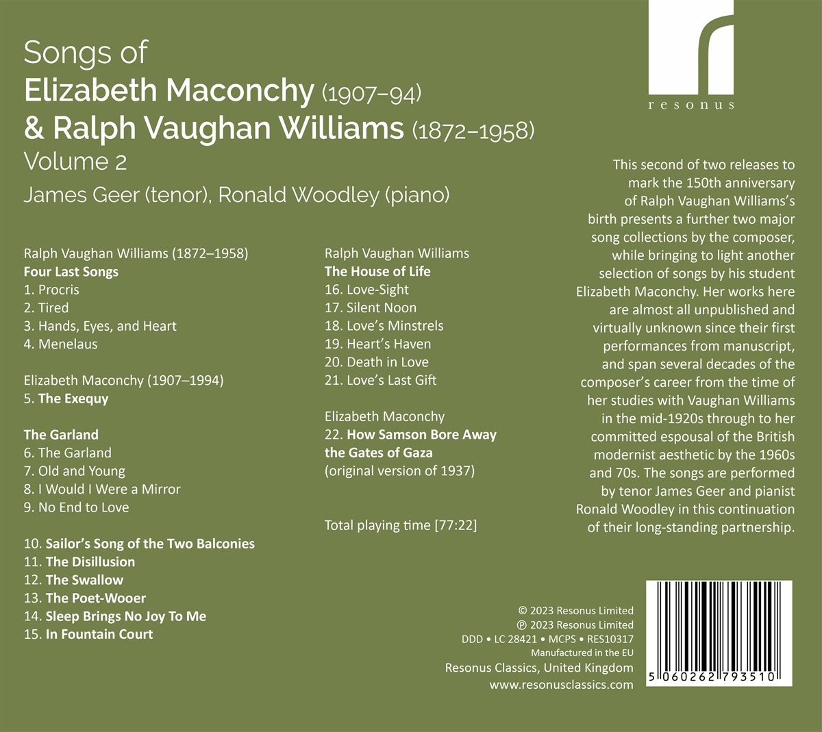 Songs of Elizabeth Maconchy & Ralph V. Williams