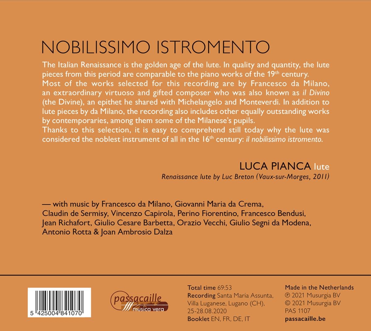 Nobilissimo Istromento. Virtuose Lautenmusik der italienischen Renaissance