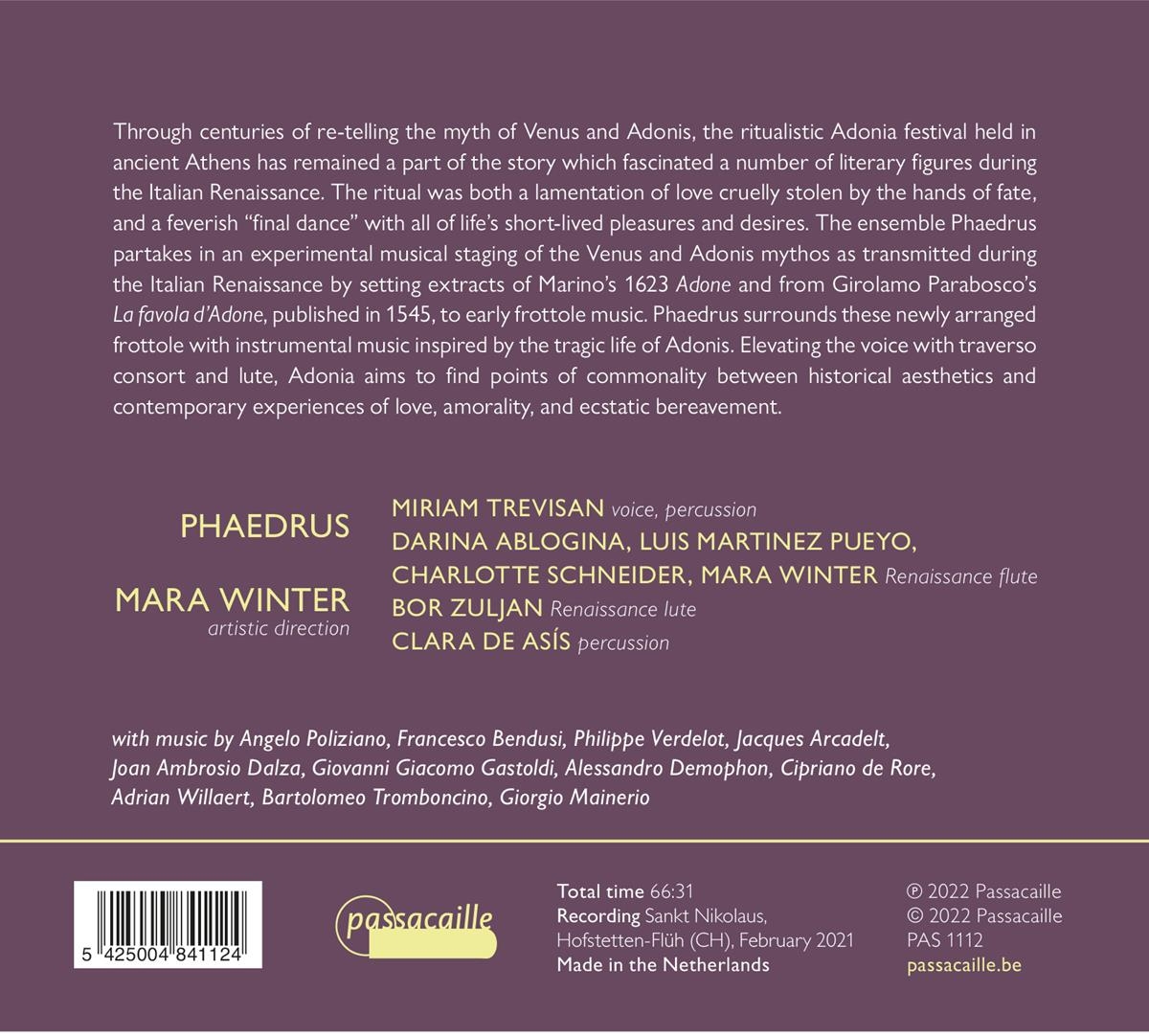 Adonia. Italienische Musik des 16. Jahrhunderts zum Gedenken an einen gefallenen Gott