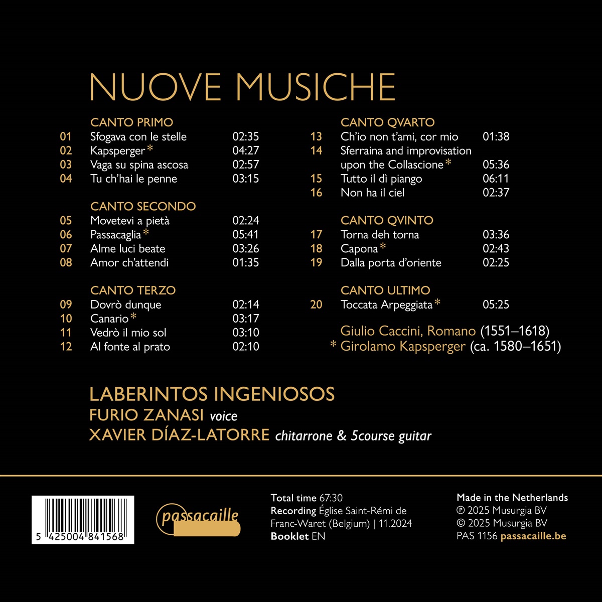 In „Le Nuove Musiche“ verleihen Furio Zanasis ausdrucksstarke Stimme und Xavier Díaz-Latorres meisterhaftes Theorbespiel der bahnbrechenden Musik von Giulio Caccini und Heinrich Kapsberger neue Tiefe. Caccinis radikale Ästhetik – die Verständlichkeit des Textes in den Mittelpunkt zu stellen, der Melodie eine ausdrucksstarke Bedeutung zu verleihen und die Begleitung auf einen diskreten, aber kraftvollen Basso continuo zu reduzieren – kommt hier mit bemerkenswerter Klarheit zum Vorschein. Zanasi und Díaz-Latorre zeigen, wie innovativ Caccinis ‚nobile sprezzatura di canto‘ wirklich war: eine freie, sprachähnliche, rhetorisch geformte Art des Singens, bei der die emotionale Kraft des Textes direkt die musikalische Ausdrucksweise leitet. In ihren Händen verschmelzen Poesie und Melodie zu einer künstlerischen Einheit, genau wie es sich Caccini und die Florentiner Camerata vorgestellt hatten. Jeder Titel entführt den Zuhörer in eine lebendige Klangwelt, in der die zeitlose Schönheit und kühne Innovation des Frühbarocks lebendig werden und eine frische und tief empfundene Perspektive auf einen entscheidenden Moment der Musikgeschichte bieten – ein fesselndes Hörerlebnis für alle Liebhaber der Alten Musik.