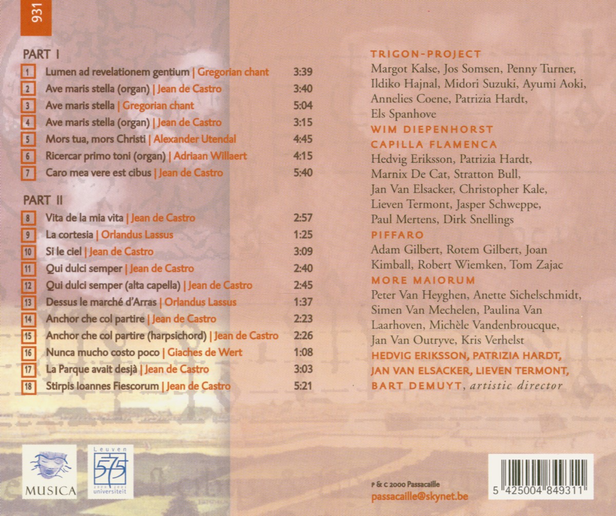 Capilla Flamenca / Demuyt, Bart / Diepenhorst, Wim / Elsacker, Jan van / Eriksson, Hedvig / Hardt, Patrizia / More Maiorum / Piffaro / Termont, Lieven / Trigon-Project