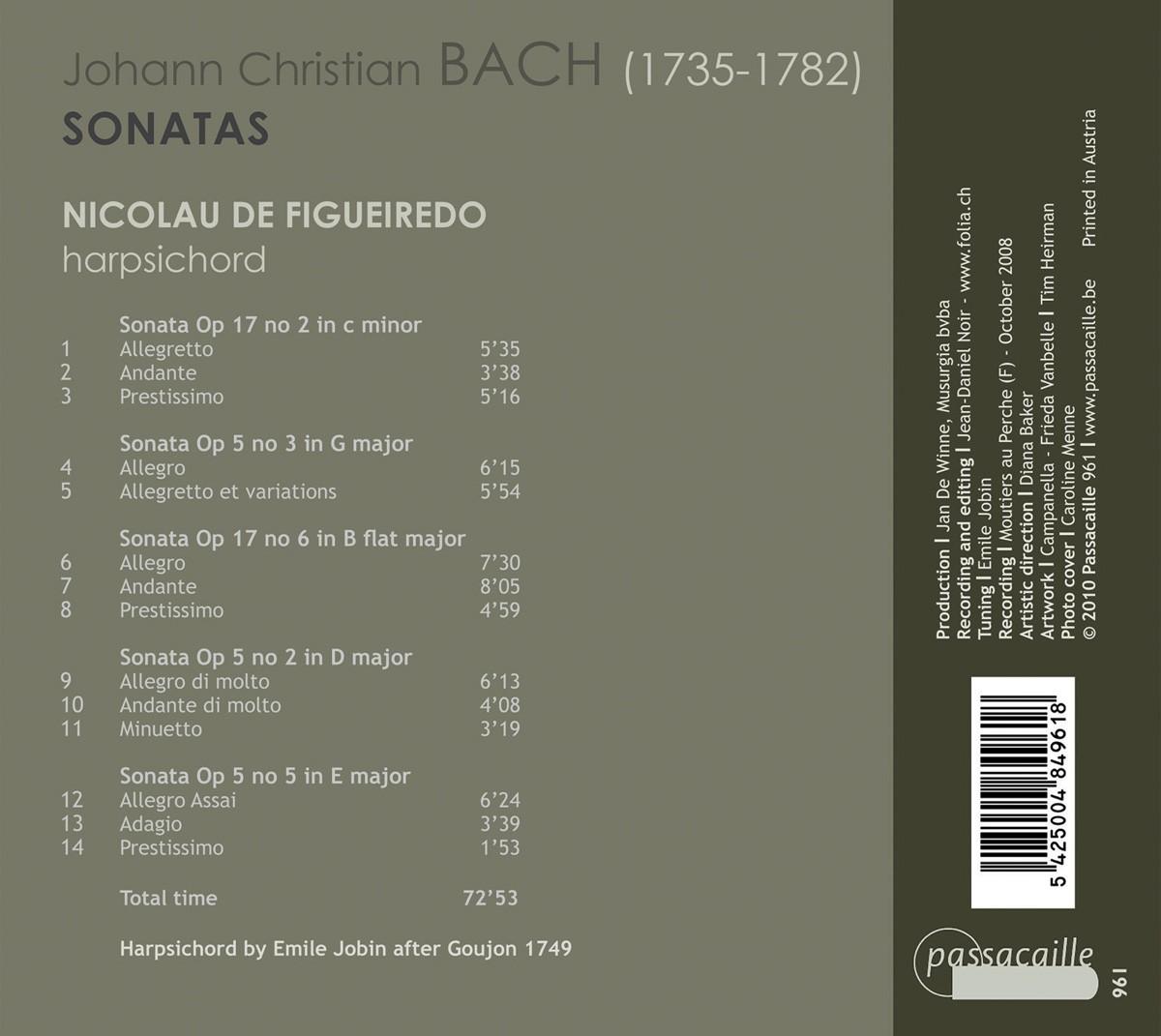 Johann Christian Bach: Cembalosonaten op.5 Nr.2,3,5 op.17 Nr.2 & 6