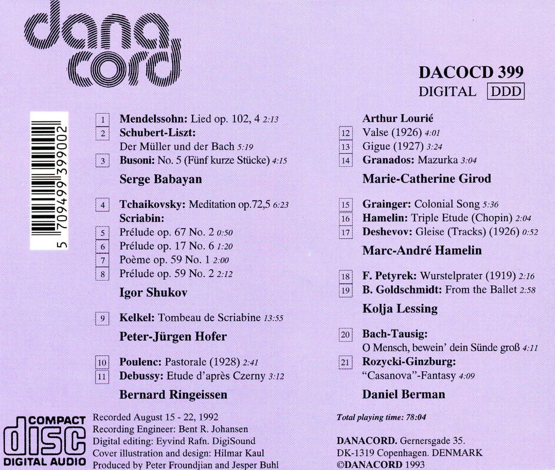 Babayan, Sergei / Berman, Daniel / Girod, Marie-Catherine / Hamelin, Marc-André / Hofer, Peter-Jurgen / Lessing, Kolja / Ringeissen, Bernard / Shukov, Igor