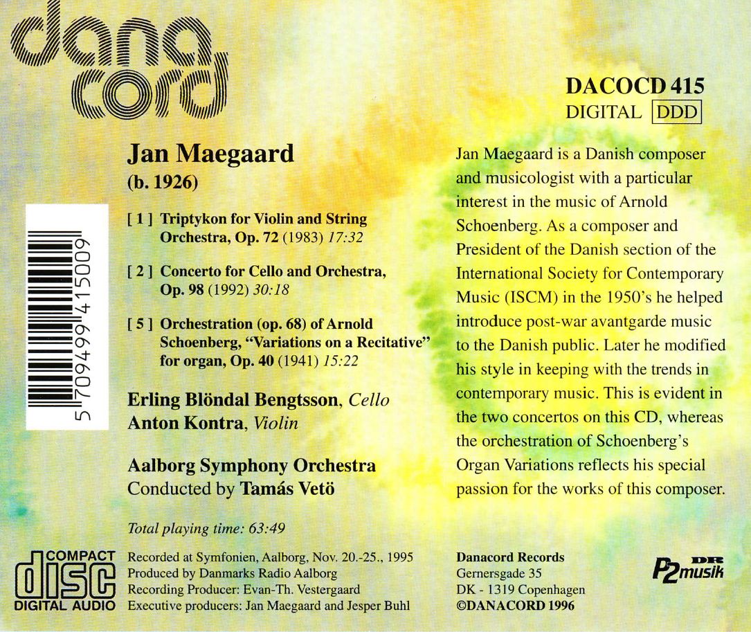 Maegaard: Violinkonzert / Schönberg: Cellokonzert
