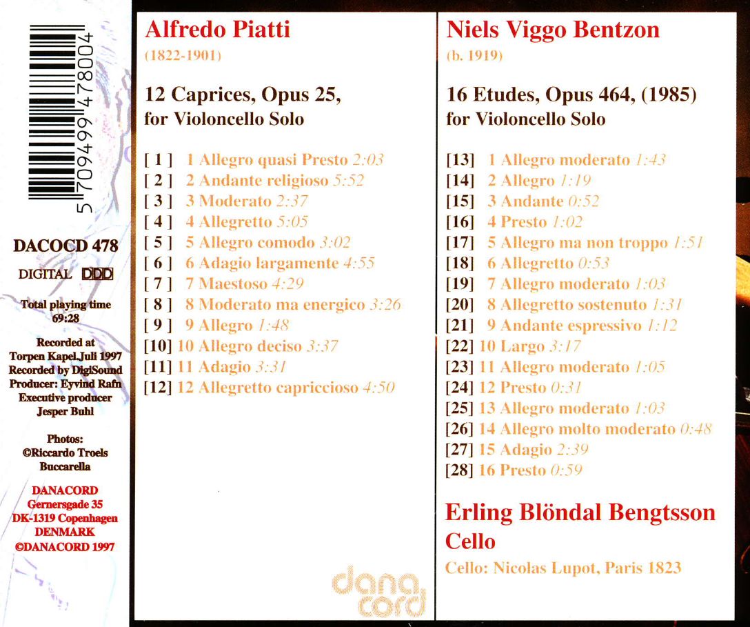 Piatti: 12 Caprices op. 25 / Bentzon: 16 Etüden op. 464
