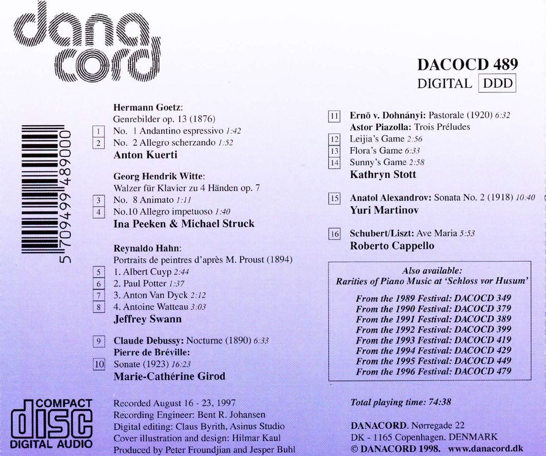 Cappello, Roberto / Girod, Marie-Catherine / Kuerti, Anton / Martinov, Yuri / Peeken, Ina / Stott, Kathryn / Struck, Michael / Swann, Jeffrey