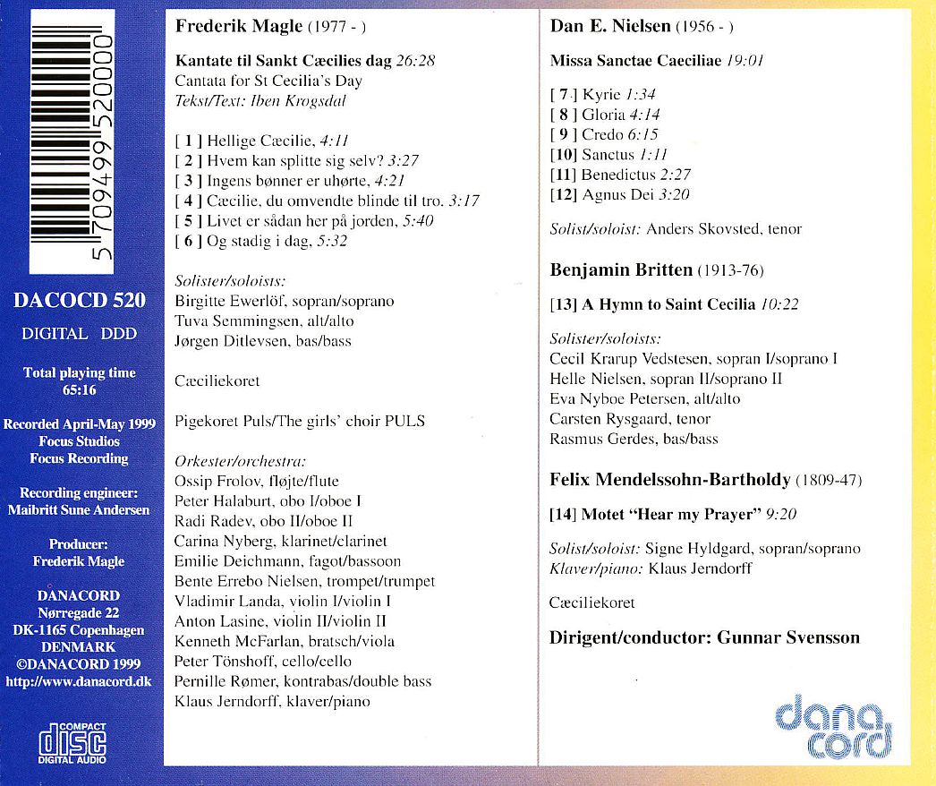 Caeciliekoret / Ditlevsen, Jorgen / Ewerlöf, Brigitte / Gerdes, Rasmus / Hyldgard, Signe / Jerndorff, Klaus / Krarup Vedstesen, Cecil / Nielsen, Helle / Nyboe Petersen, Eva / Pigekoret Puls / Rysgaard, Carsten / Semmingsen, Tuva / Skovsted, Anders / Svensson, Gunnar