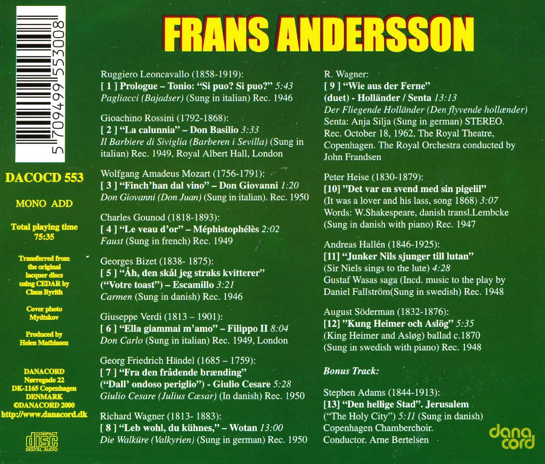 Andersson, Frans / Bertelsen, Arne / Copenhagen Chamber Choir / Frandsen, John / The Royal Orchestra