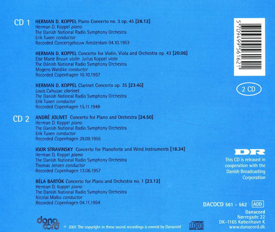 Bruun, Else Marie / Cahuzac, Louis / Danish National Radio Symphony Orchestra / Jensen, Thomas / Koppel, Herman D. / Koppel, Julius / Malko, Nikolai / Tuxen, Erik / Woldike, Mogens