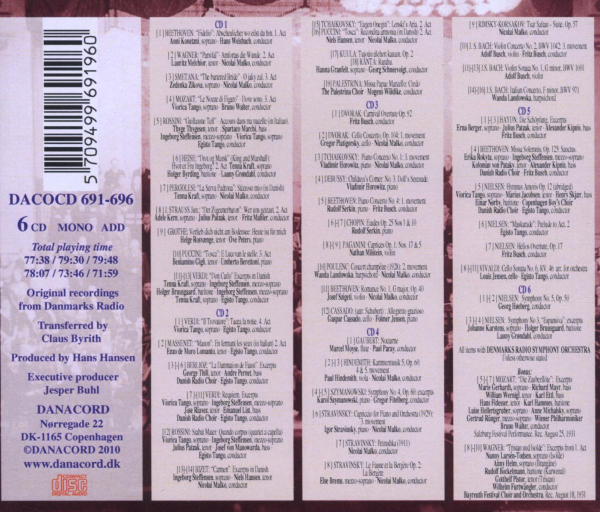 Berger, Erna / Busch, Fritz / Byrding, Holger / Danish Radio Choir / Gigli, Beniamino / Horowitz, Vladimir / Kraft, Tenna / Malko, Nikolai / Melchior, Lauritz / Palestrina Choir / Patzak, Julius / Piatigorsky, Gregor / Rosvaenge, Helge / Szigeti, Joseph / Tango, Egisto / Walter, Bruno / Weisbach, Hans / Wiener Philharmoniker