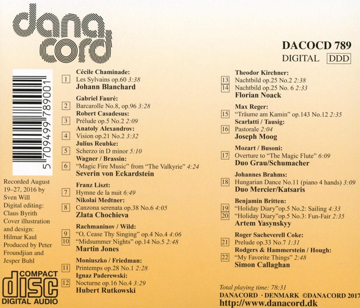 Blanchard, Johann / Callaghan, Simon / Chochieva, Zlata / Eckardstein, Severin von / GrauSchumacher Piano Duo / Jones, Martin / Katsaris, Cyprien / Mercier, Hélène / Moog, Joseph / Noack, Florian / Rutkowski, Hubert / Yasynskyy, Artem