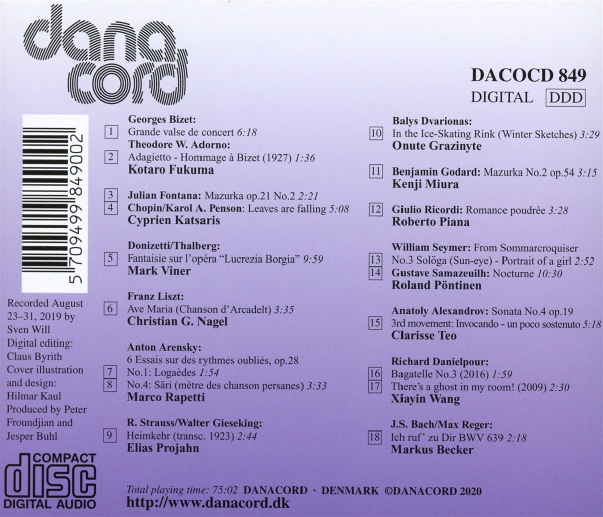 Becker, Markus / Fukuma, Kotaro / Gražinyte, Onute / Katsaris, Cyprien / Nagel, Christian / Piana, Roberto / Pöntinen, Roland / Projahn, Elias / Rapetti, Marco / Teo, Clarisse / Viner, Mark / Wang, Xiayin