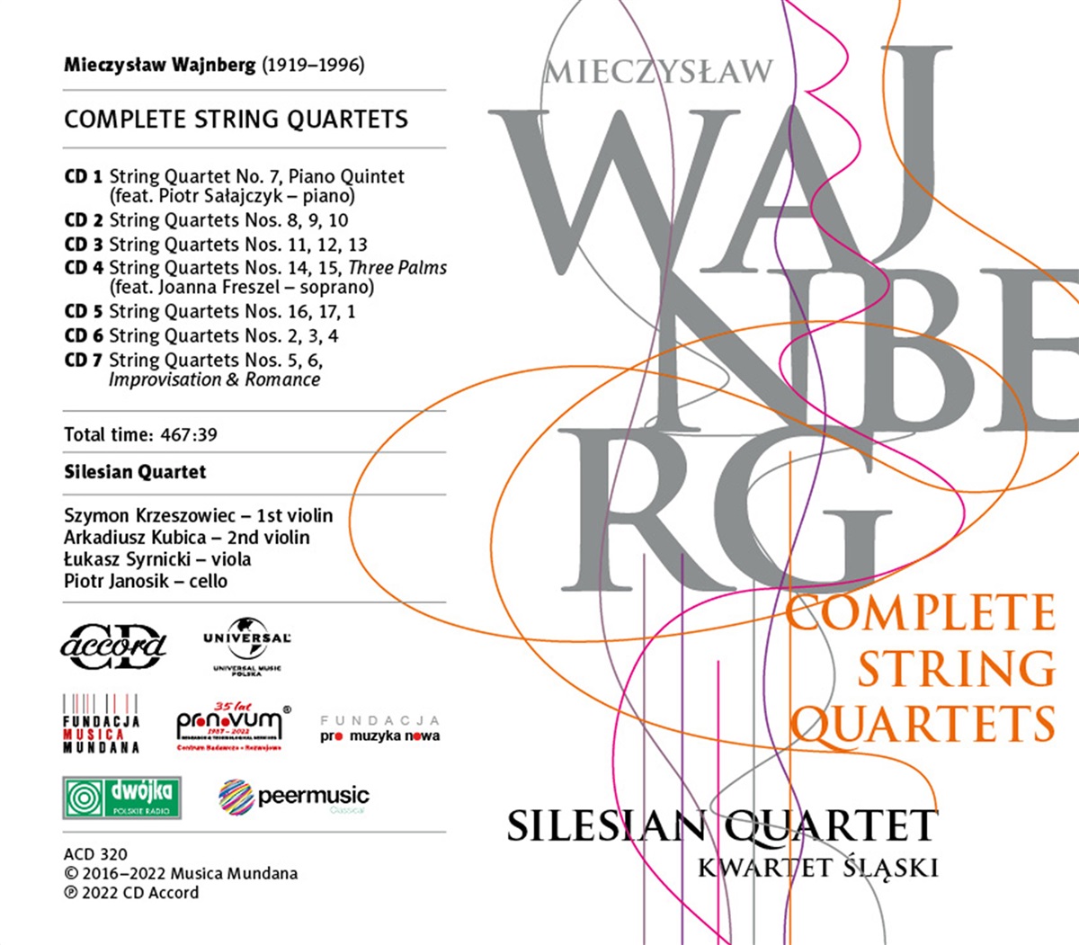 Das Silesian Quartet hat zwischen 2016 und 2021 sämtliche Streichquartette des polnisch-stämmigen, sowjetischen Komponisten Mieczys?aw Weinberg (poln. Schreibweise: Wajnberg) in mustergültigen Aufnahmen vorgelegt. Erstaunlicherweise ist dies erst die zweite Gesamteinspielung der Streichquartette überhaupt, und das, obwohl Weinberg mittlerweile als einer der bedeutendsten Komponisten der Sowjet-Ära gilt. Ergänzt werden die 17 Quartette durch das Klavierquintett f-Moll op. 18 (1944), die 3 Psalmen op. 120 für Sopran & Streichquartett und die „Improvisation und Romanze“ (1950).