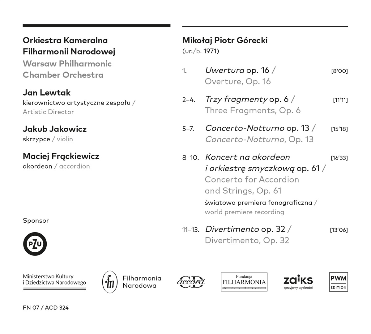 Lewtak, Jan / Jakowicz, Jakub / Frackiewicz, Maciej / Warsaw Philharmonic Chamber Orchestra
