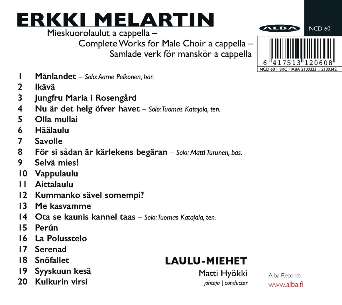 Melartin: Sämtliche Werke für Männerchor a cappella