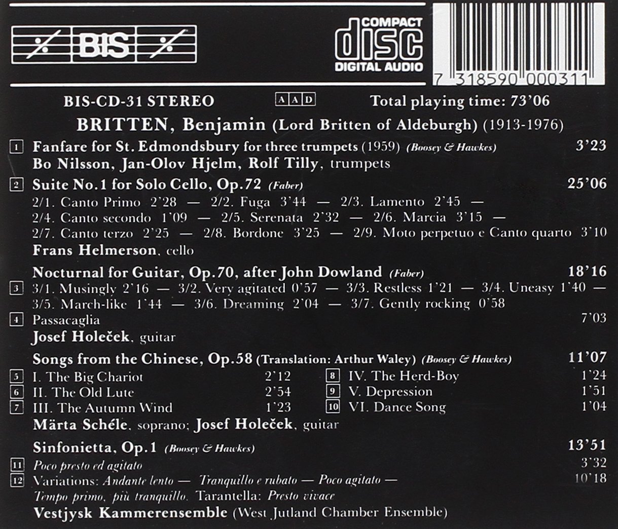 Helmerson, Frans / Hjelm, Jan-Olov / Holecek, Josef / Nilsson, Bo / Schele, Marta / Tilly, Rolf / Vestysk Chamber Ensemble