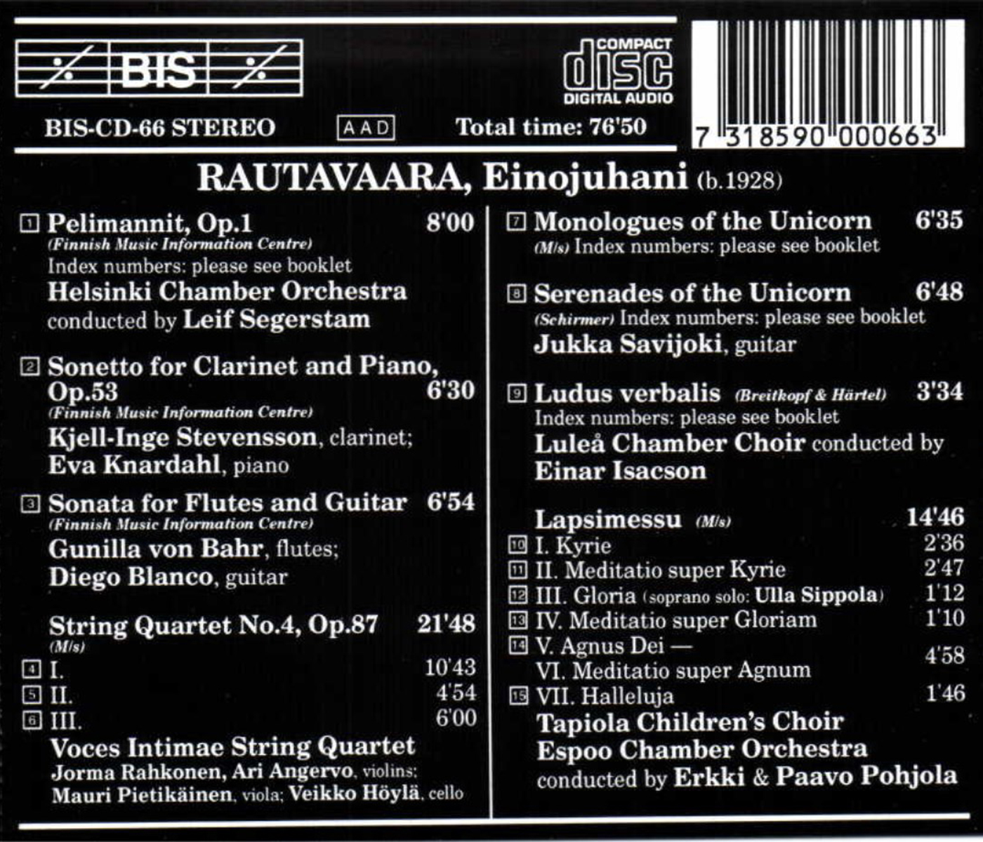 Blanco, Diego / Helsinki Chamber Orchestra / Hoyla, Veikko / Isacson, Einar / Knardahl, Eva / Lulea Chamber Choir / Pohjola, Erkki / Rahkonen, Jorma / Savijoki, Jukka / Segerstam, Leif / Stevensson, Kjell-Inge / Tapiola Choir / Voces Intimae Quartet / von Bahr, Gunilla