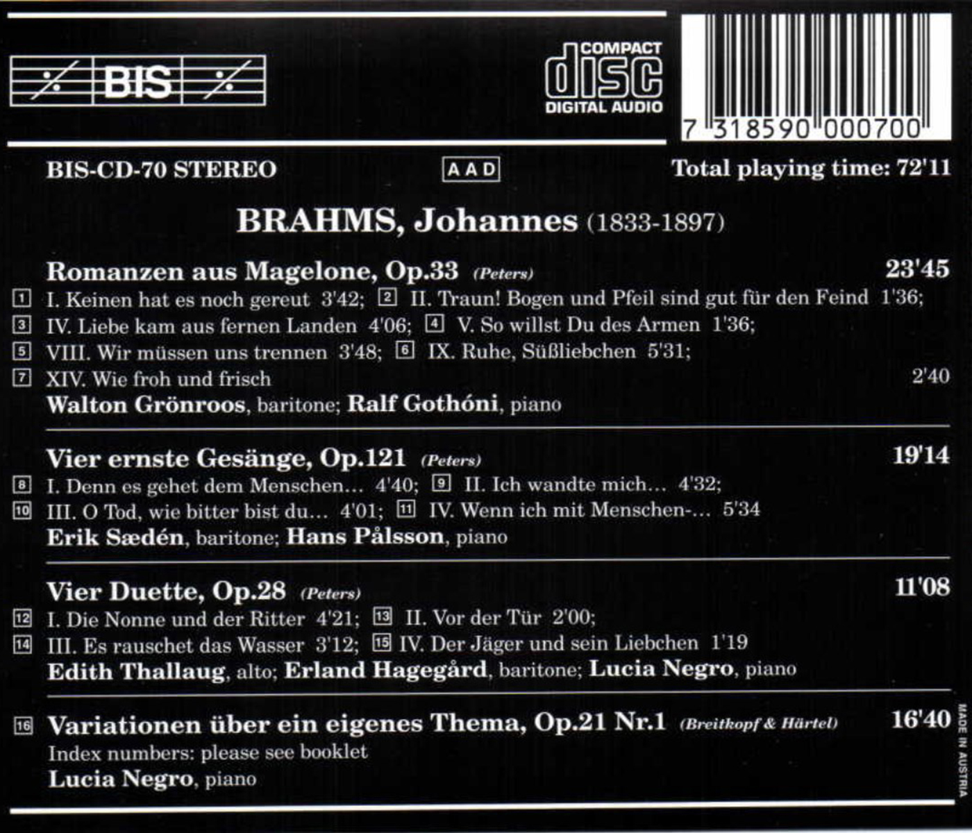 Gothóni, Ralf / Grönroos, Walton / Hagegard, Erland / Negro, Lucia / Palsson, Hans / Saedén, Erik / Thallaug, Edith