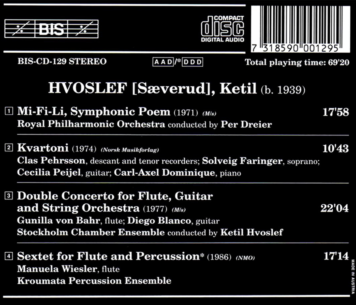 Blanco, Diego / Dominique, Carl-Axel / Dreier, Per / Faringer, Solveig / Hvoslef, Ketil / Kroumata Percussion Ensemble / Pehrsson, Clas / Peijel, Cecilia / Royal Philharmonic Orchestra / Stockholm Chamber Ensemble / von Bahr, Gunilla / Wiesler, Manuela