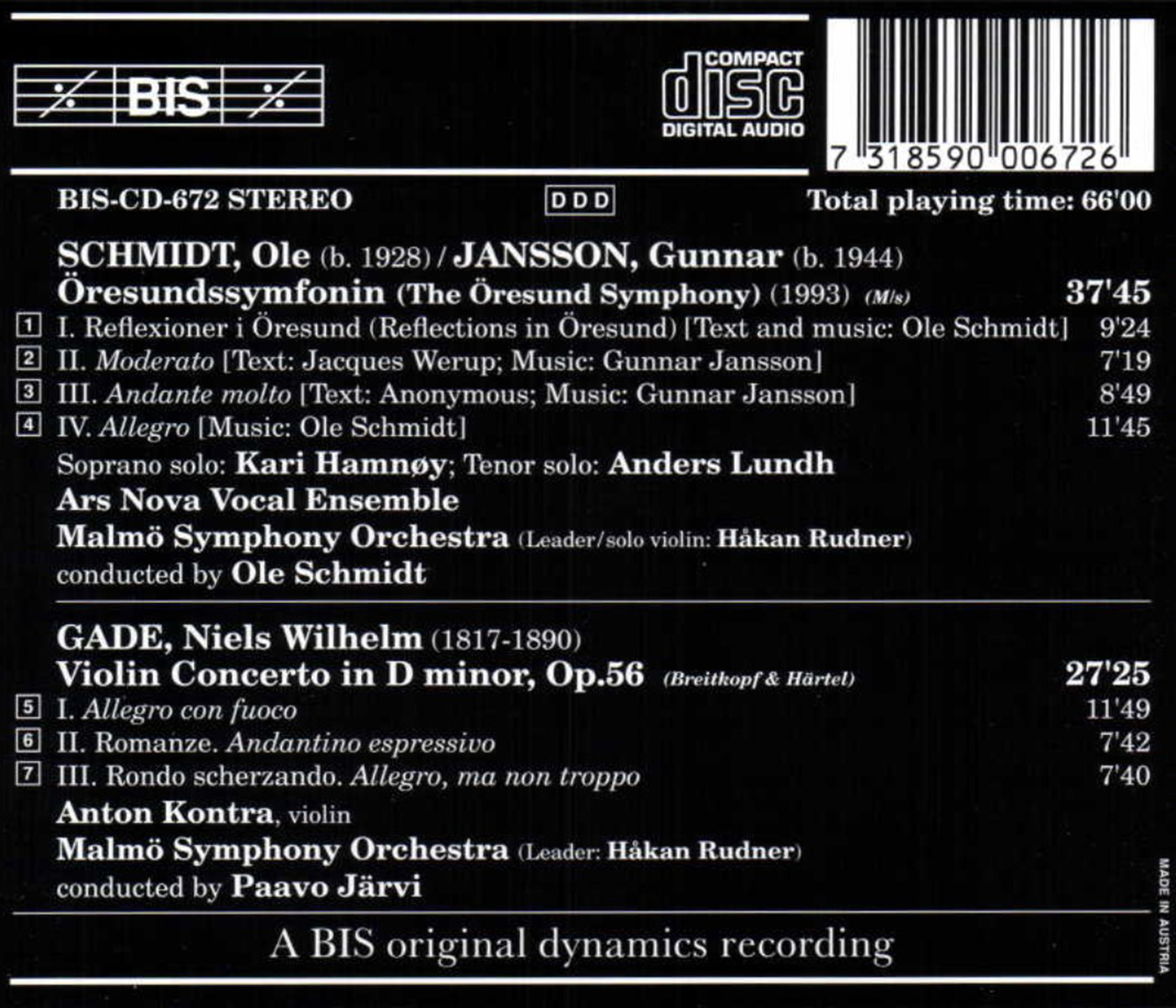 Ars Nova Copenhagen / Hamnoy, Kari / Järvi, Paavo / Kontra, Anton / Lundh, Anders / Malmö Symphony Orchestra / Schmidt, Ole