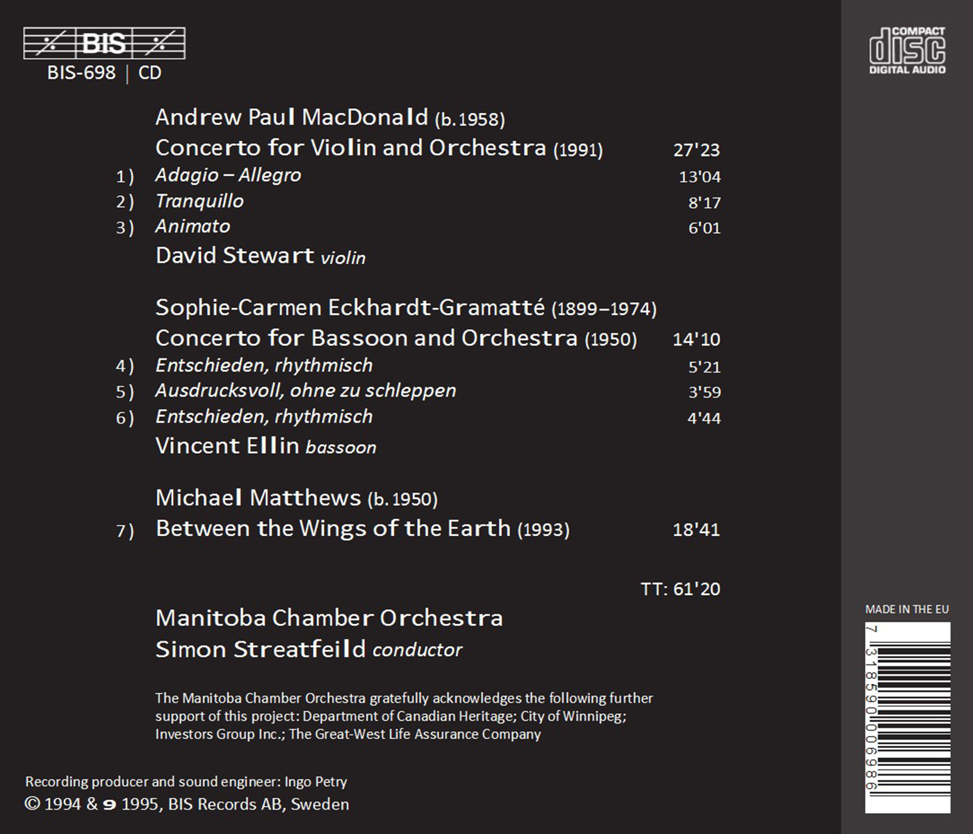 Ellin, Vincent / Manitoba Chamber Orchestra / Stewart, David / Streatfeild, Simon