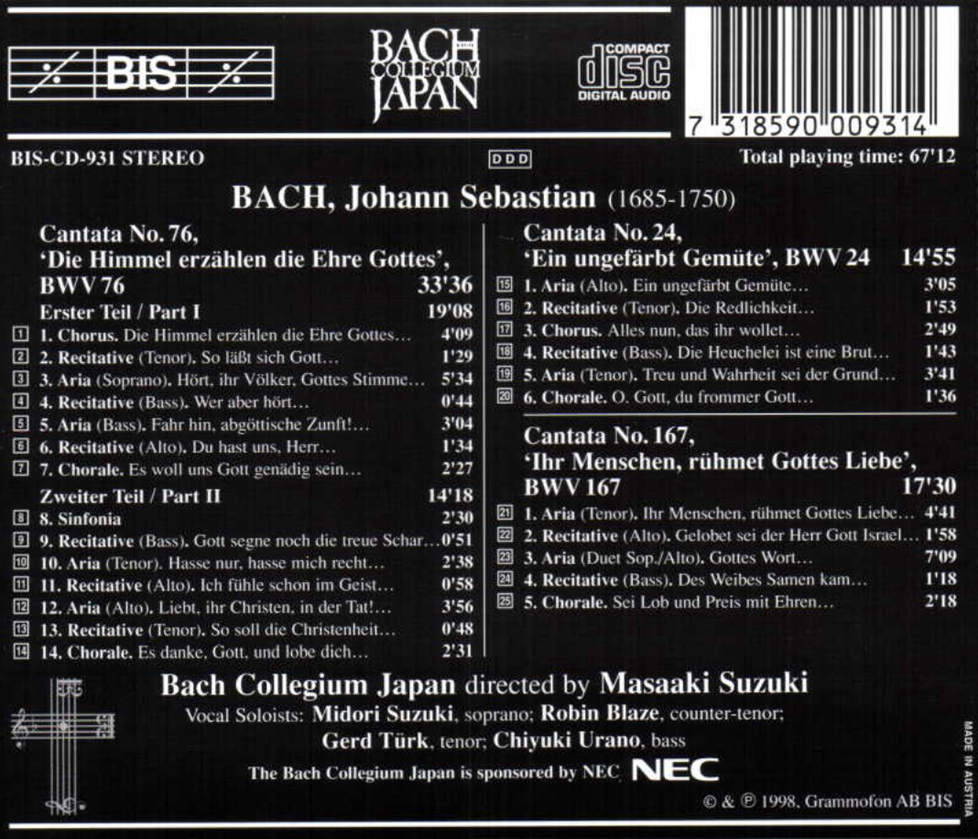Bach Collegium Japan / Blaze, Robin / Suzuki, Masaaki / Suzuki, Midori / Türk, Gerd / Urano, Chiyuki