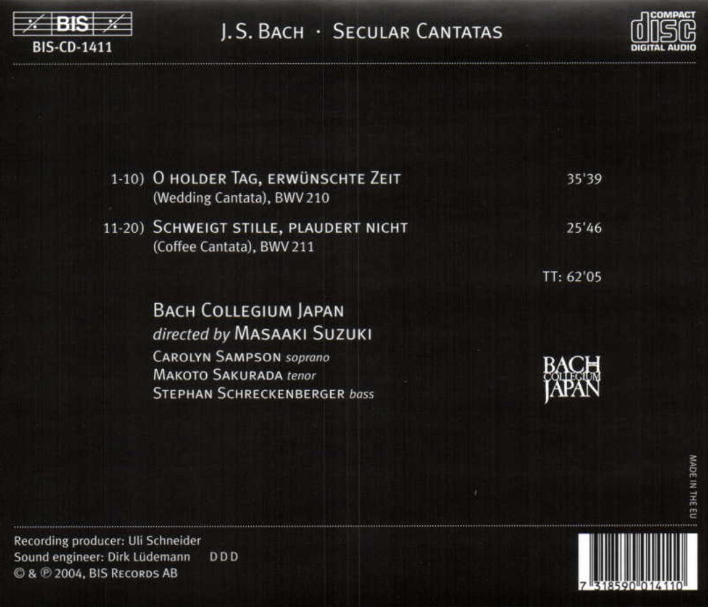 Bach Collegium Japan / Sakurada, Makoto / Sampson, Carolyn / Schreckenberger, Stephan / Suzuki, Masaaki