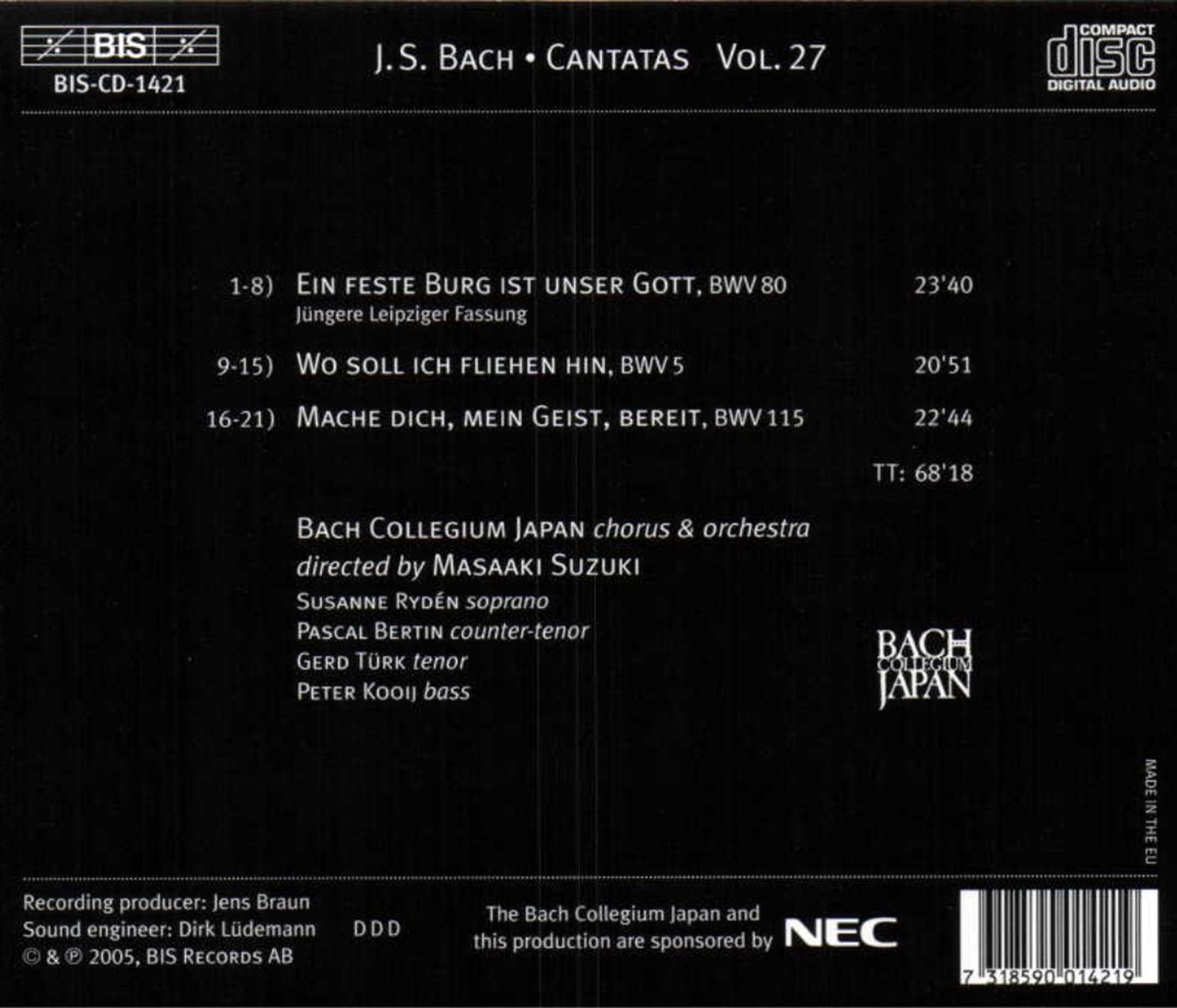 Bach Collegium Japan / Bach Collegium Japan Chorus / Bertin, Pascal / Kooij, Peter / Rydén, Susanne / Suzuki, Masaaki / Türk, Gerd